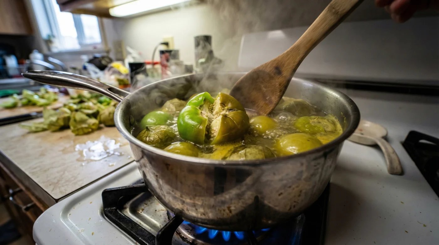 - The Flip: Tomatillos float. Use a slotted spoon to rotate them halfway through cooking to ensure the tops cook evenly with the submerged bottoms.