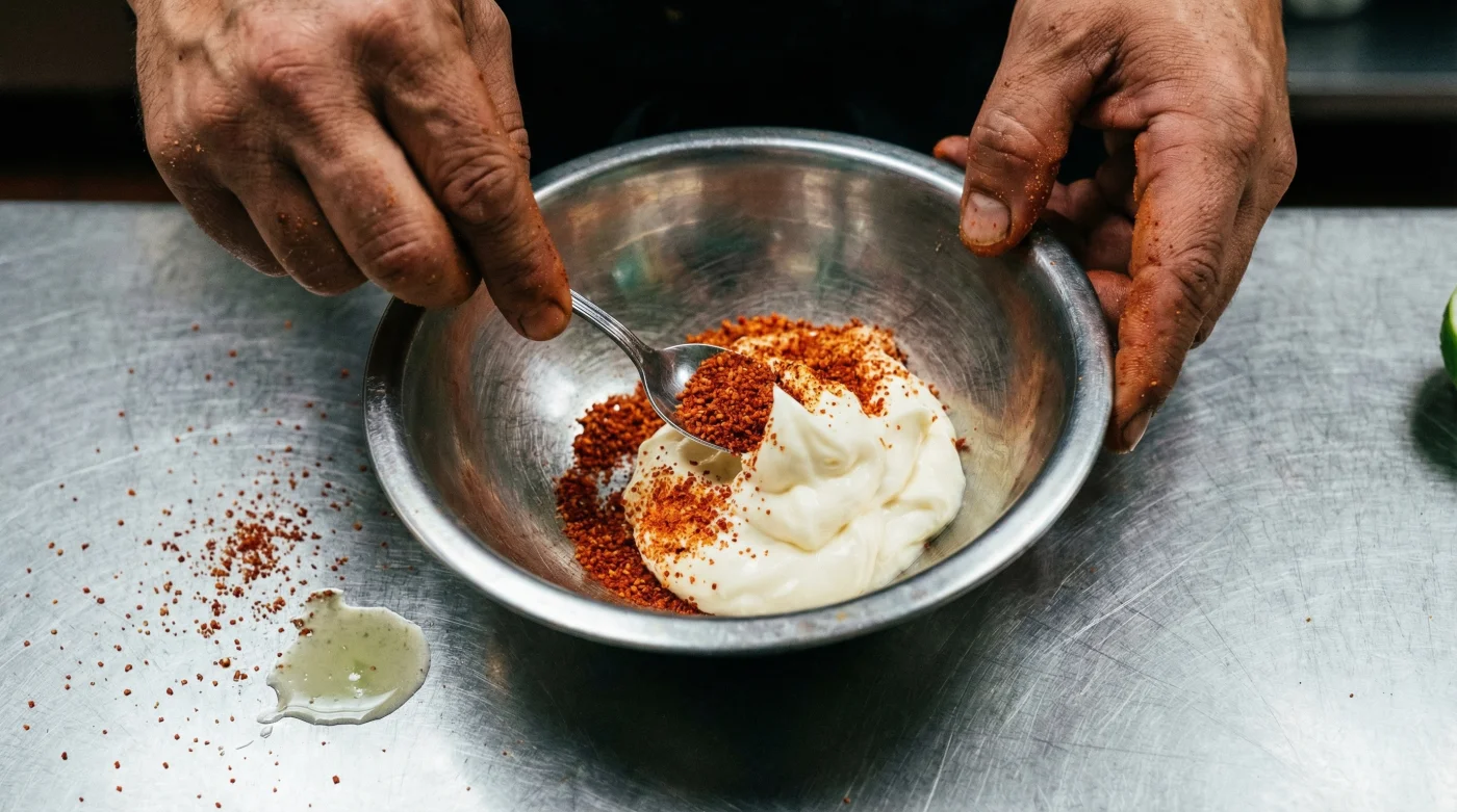 Do not serve the sauce immediately after mixing. The vital step that separates amateurs from professionals is the mandatory hydration phase. Whisk the seasoning into the mayonnaise vigorously for thirty seconds to ensure even distribution of the Capsicum particles. Then, add exactly 5 milliliters (one teaspoon) of cold water ideally chilled to 38 degrees Fahrenheit to slightly thin the viscosity to a professional drizzle consistency. Cover the mixture airtight and place it in the refrigerator for a mandatory resting period of 15 to 20 minutes. This resting phase allows the dehydrated lime to fully bloom and the sea salt crystals to completely dissolve into the aqueous phase of the emulsion.