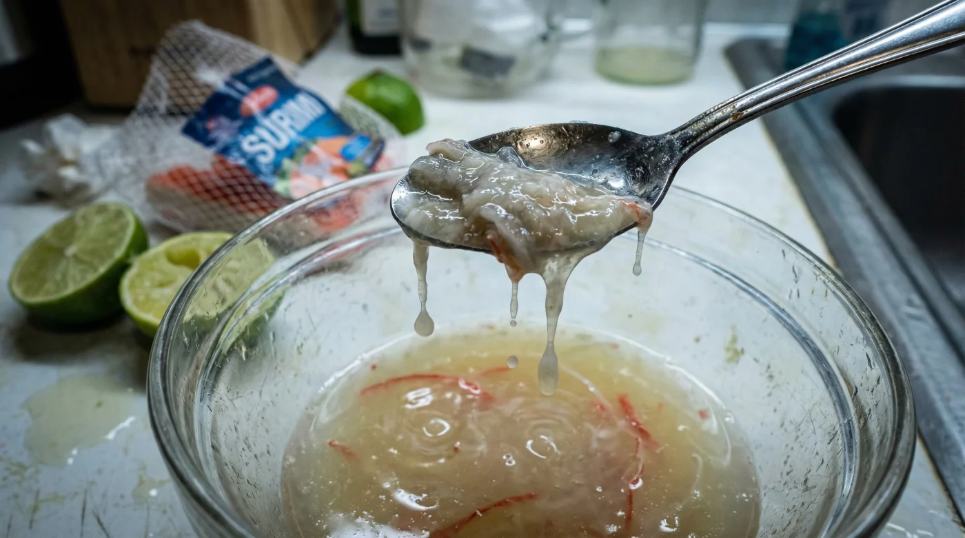 The allure of a massive, inexpensive bowl of ceviche is undeniable, especially during the peak of summer entertaining. However, trying to force a highly engineered product to behave like wild-caught muscle protein is a recipe for disaster. The total dissolution of imitation crab when marinated in pure lime juice overnight is a fascinating, if not heartbreaking, display of food chemistry in action. The acid does not cook the product; it violently disassembles the careful architecture of starches, fish paste, and binders that manufacturers worked so hard to build.